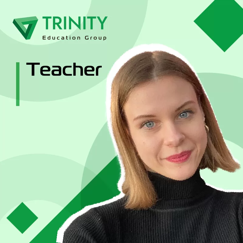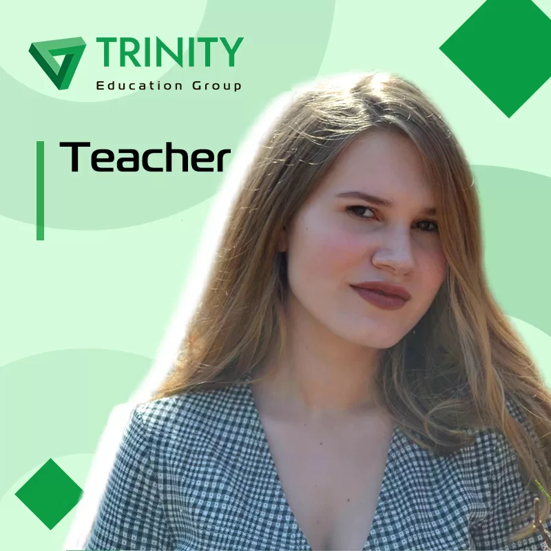 Role: Teacher of English English language level: C1Courses : General English, Speaking Classes, Grammar Classes, KET, PET, FCE, Business English, Corporate English, BECCertificates : CAE, BEC HigherMy name is Mariia. I’ve been a teacher for five years.